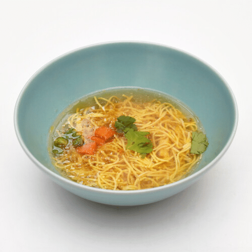 rosół z kurczaka z cebulą, czosnkiem, marchewką i makaronem 350ml
